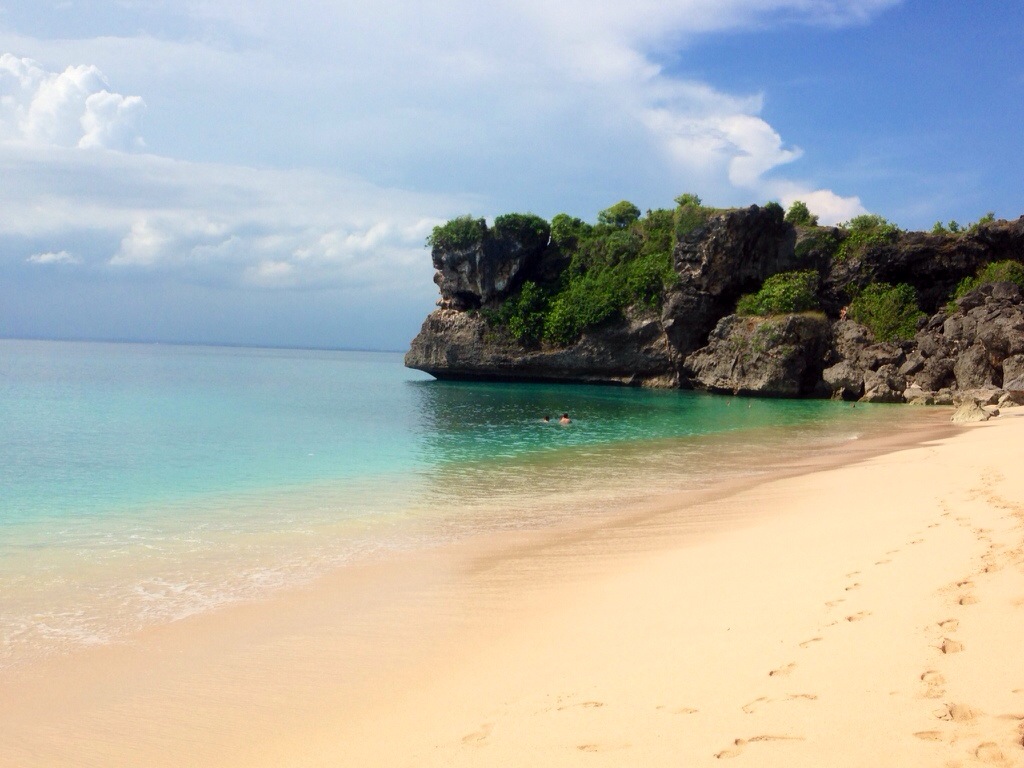 Padang Padang is a small beach on the way to Uluwatu. The road crosses a bridge that doubles as moped parking for the beach below. As with all places in Bali, you must trek the stairs down either side of the bridge to reach the sea below.