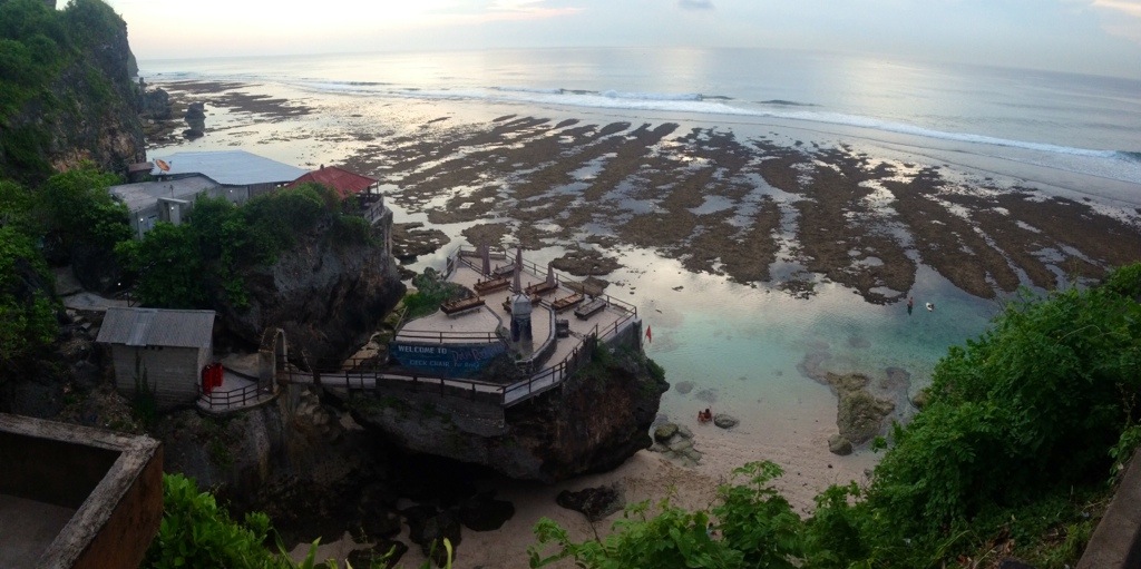 A wide beach good for both swimming and surfing, you can easily spend all day here. This beach is a little off the beaten path and you have to wind around through small jungle roads and then walk down to the beach through some construction. This beach is still on the process if being discovered which is part of the charm. If you drive a moped there be prepared to pay 2000 Indonesian rupiah for parking (like 25¢ us).